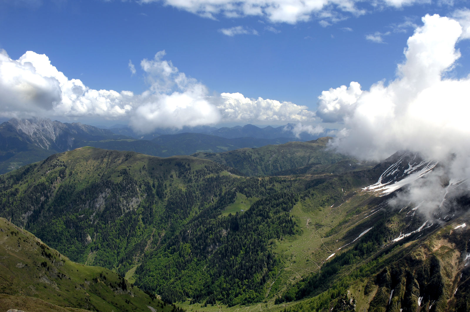 ![]() Der Berg ruft immer lauter. Kurz vorm Ziel lichteten sich die Wolken und präsentierten einen sensationellen Blick über Italien und Österreich. |