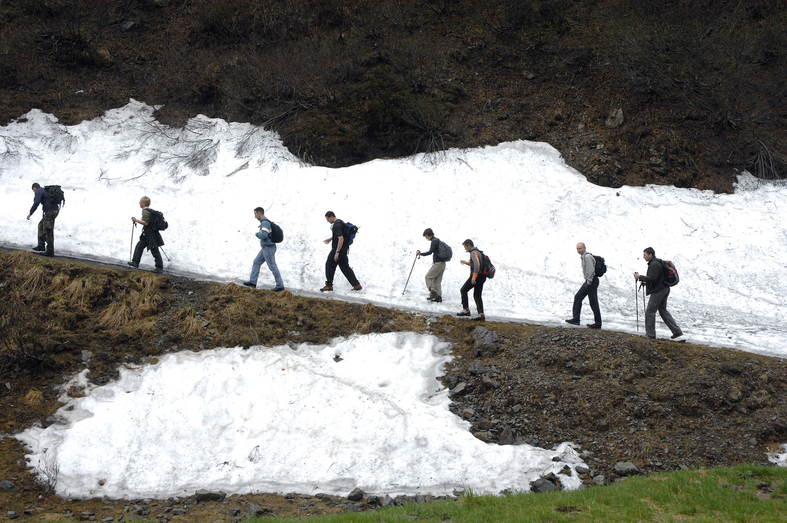 ![]() Wer raufkommt, muss auch runterkommen. Auf krummen Pfaden bahnen sich die PROMOS Bergsteiger ihren Weg ins Tal. |