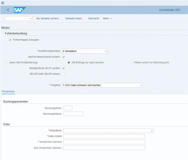 Die Universalbuchungsschnittstelle wird für die SAP Finanzbuchhaltung (FI) verwendet und bietet sich auch als Tool zur Datenüberleitung von Buchungsbelegen an. Die Daten werden hierbei in wenigen Schritten, mittels Batch-Input-Mappen in SAP® importiert.
