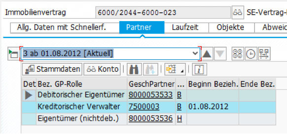 der Stammdaten Mietobjekt, Mietvertrag und SE-Verwaltungsvertrag
