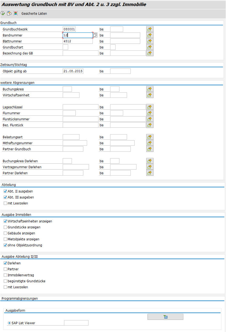 Für die professionelle Verwaltung Ihrer Liegenschaften bietet Ihnen SAP® mit dem Liegenschaftsmodul (LUM) die Möglichkeit, bewertungsrelevante Informationen zu Ihren Immobilien unter Berücksichtigung der in Grundbüchern abgebildeten Eigentumsverhältnisse zu erfassen. Die in Ihrem SAP® System gepflegten Daten zu Grundbüchern, Flurstücken, Einheitswertbescheiden, Mithaften, Flurstücks-Fortführungen sowie weiterer öffentlicher Grundstücksverzeichnisse bilden die Basis für ein effektives Liegenschaftsmanagement.