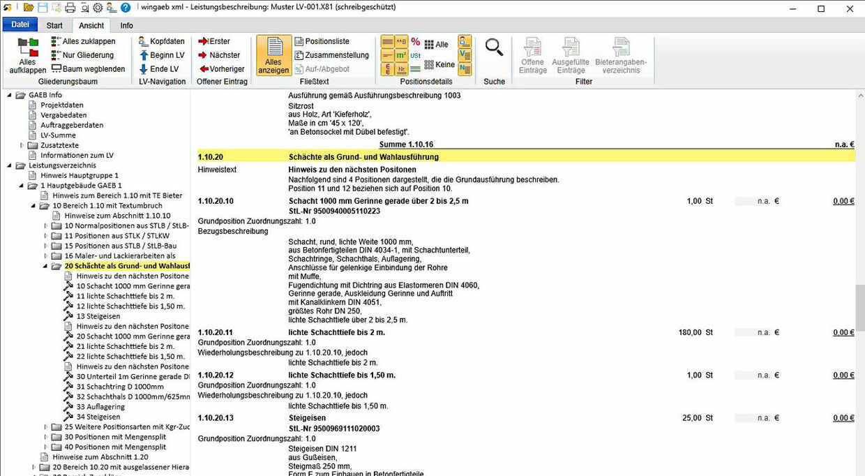 - In der ersten Zeile des Langtextes steht die Kennzeichnung, z. B. "Ausführungsbeschreibung 1003".