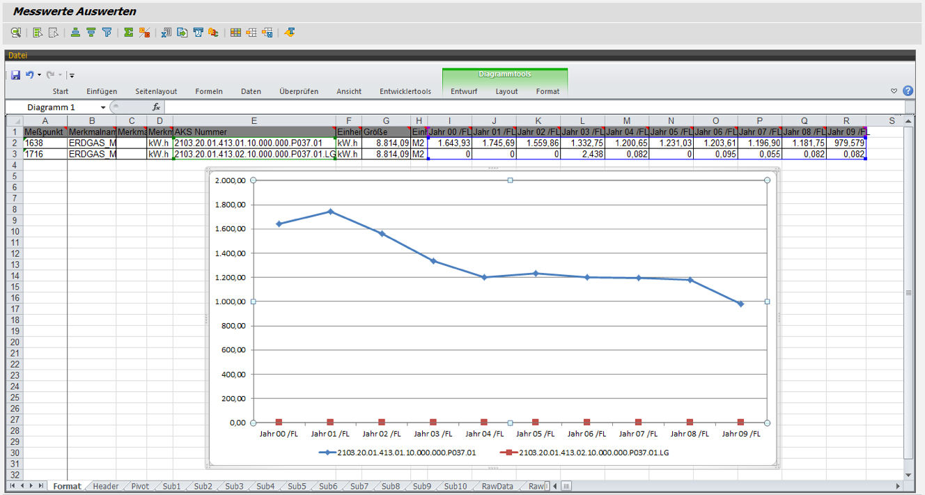 Es können im System Zähler ebenso wie Messpunkte verwaltet werden. Für den Import der Messdaten steht ein konfigurierbarer Excel Upload zur Verfügung. Die zu messenden Einheiten werden im System eingerichtet. Hierbei ist eine Umrechnung in Standardeinheiten, z. B. von Liter Öl in kWh, möglich. Ebenso können externe Ordnungsbegriffe, z. B. DE-Nummern des Netzbetreibers, oder interne Ordnungsbegriffe, z. B. Anlagenkennzeichnungen, verwendet werden.