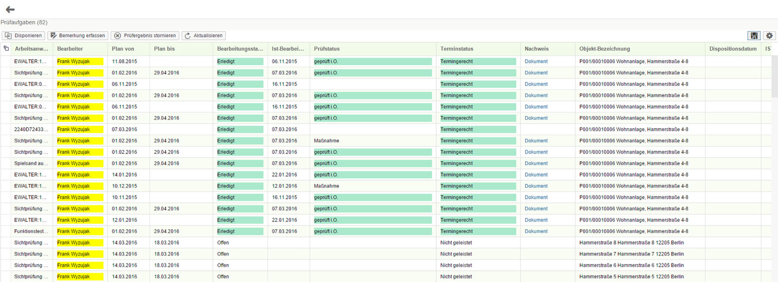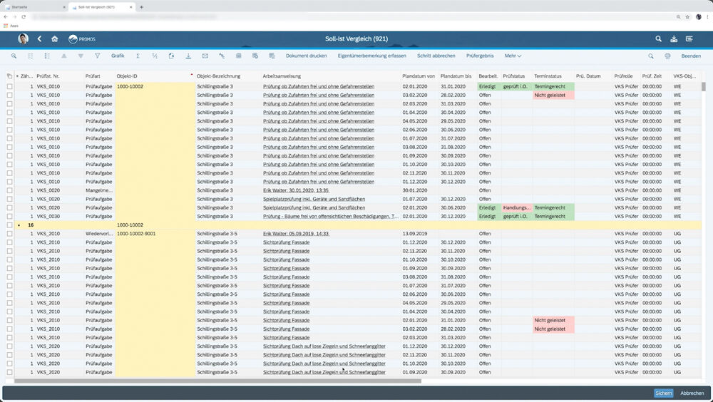 ![]() Soll-Ist Vergleich zum Prüfstatus mit Ampelfarben im Webportal |