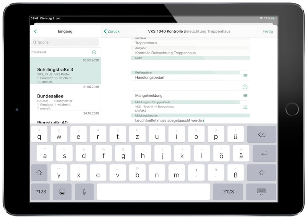 - Mobile Bestandsdatenpflege: Mit der Anbindung an das SAP® ist es möglich, die Bestandsdaten mobil vor Ort zu pflegen. Die mobil erfassten Daten können dann im Vieraugenprinzip in das System zurück integriert werden.