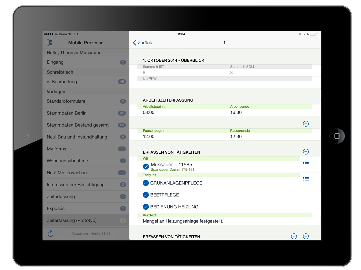 Erfassung vor Ort: Die Tätigkeiten können vor Ort erfasst werden. Ein Übertragen von Papier in eine Software wird mit easysquare überflüssig.