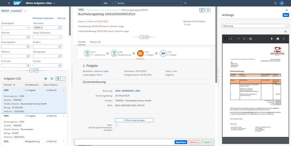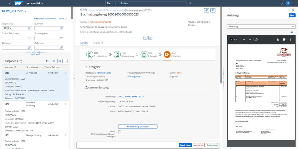 Abbildung 4: Dank der Splitscreen-Darstellung von Dokumenten im Freigabeprozess können sich User schnell und einfach einen Überblick über alle notwendigen Informationen verschaffen und Rechnungen prüfen sowie freigeben.