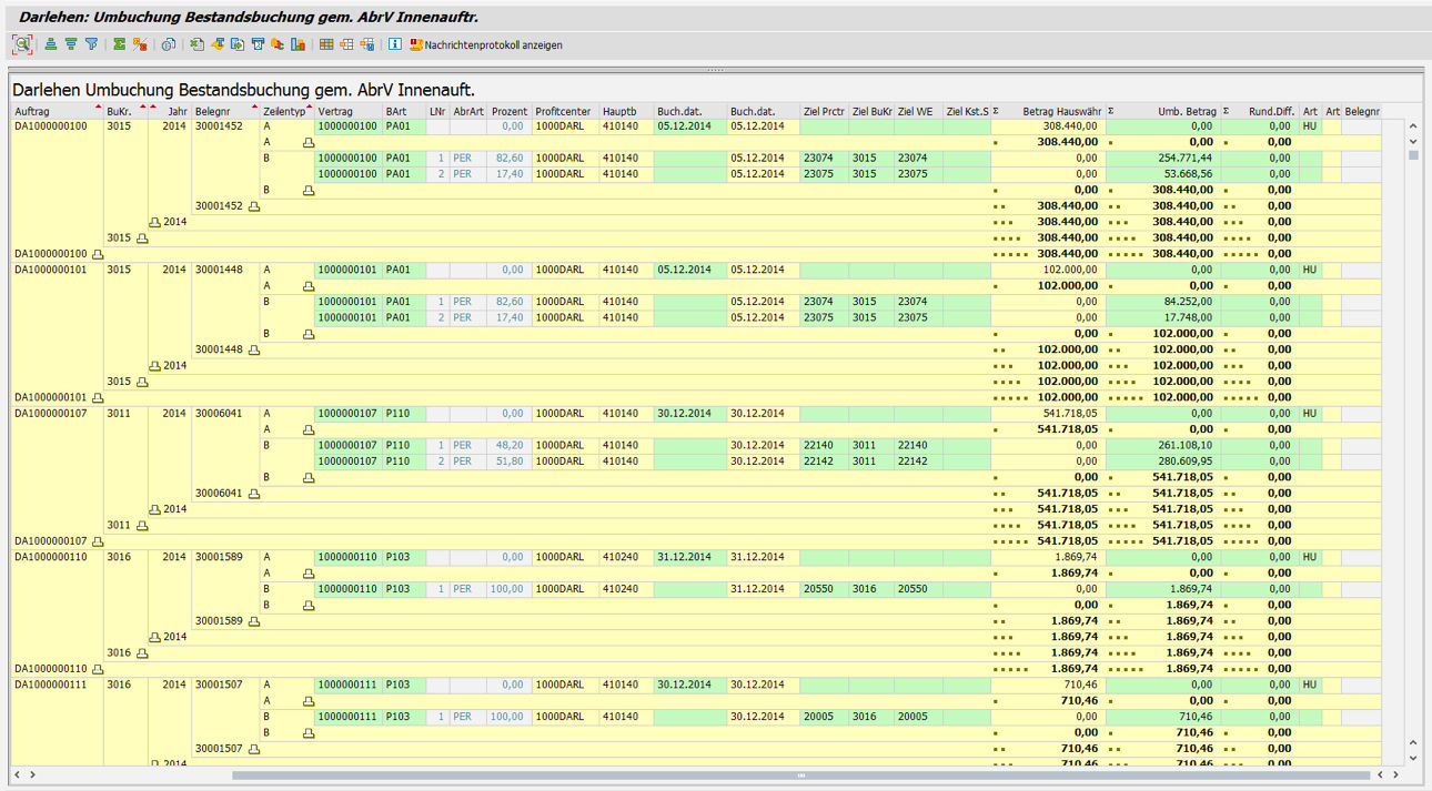 Darüber hinaus sind Darlehensbestände nicht selten den einzelnen (Immobilien-)Objekten zugeordnet. Dies lässt sich jedoch im SAP® System nicht ohne Weiteres erkennen oder auswerten. PROMOS stellt Ihnen speziell für diesen Zweck eine Anwendung zur Verfügung, welche es erlaubt, die Darlehensbestände analog der Darlehenskontierung auf das jeweilige Controlling-Objekt bzw. die Controlling-Objekte zu buchen. Auf diese Weise sind Sie in der Lage, Darlehensbelastungen direkt auf dem einzelnen Objekt zu ermitteln und damit die Bewertung der Finanzierungsnotwendigkeiten, Umschuldungsbeträge und sogar der Beleihungsreserven vorzunehmen.