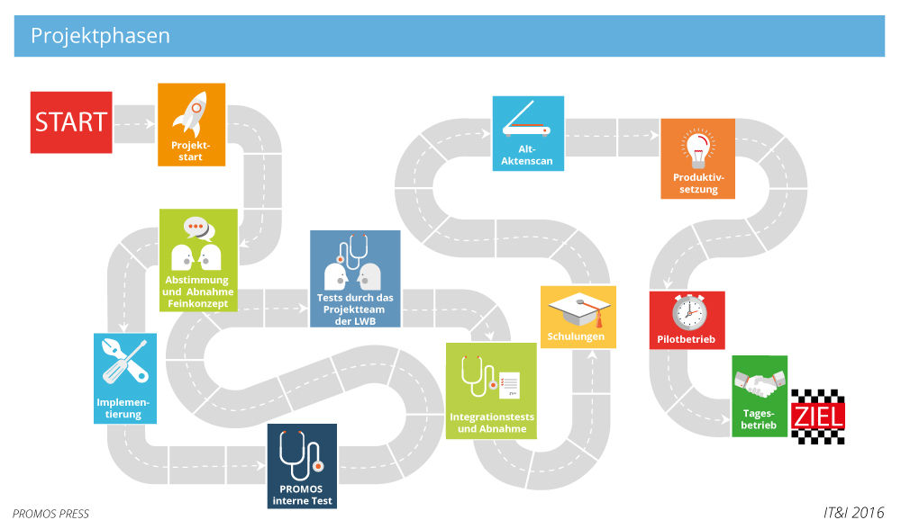 Die LWB setzte sich zudem gezielt mit dem Thema der Aufbewahrungspflichten auseinander. In ausführlichen Gesprächen mit Anwälten erörterte man, welche Unterlagen als vertragsrelevant einzustufen sind und wie lang Originale aufbewahrt werden müssen. Letztendlich entschied man sich für das zertifizierte RESI-Scan Verfahren, welches in naher Zukunft realisiert werden soll. So galt es, verschiedenste Punkte zu bedenken, wobei PROMOS als Partner mit langjähriger Projekterfahrung jederzeit an der Seite der LWB stand. Erst nach exaktem Ausloten des Ziels und einer ausführlichen Planung der Route konnte sich die LWB auf die Reise machen.