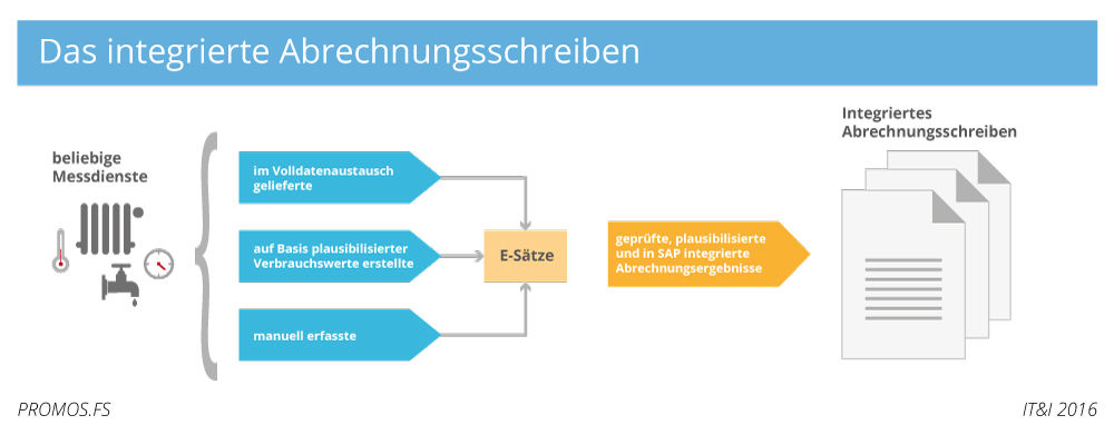 Die meisten Immobilienverwalter nutzen bei der Abrechnung der Heiz- und Wasserkosten verschiedene Wärmemessdienste, die zumeist über unterschiedliche technische Möglichkeiten in der Bereitstellung ihrer Abrechnungsschreiben verfügen. Standard ist hier in der Regel der Austausch von D/W-Sätzen und die Nutzung der messdienstindividuellen Abrechnungsschreiben, die - in Papierform geliefert - manuell den Betriebskostenabrechnungsschreiben zusortiert werden müssen. Immer mehr Immobilienverwalter nutzen im Rahmen des Dienstleistungspakets „IBEKO“ der PROMOS.FS die von Wärmemessdiensten im E-Satzformat gelieferten Abrechnungsergebnisse, die – ohne manuelle Zusortierung - die Nutzung eines in Layout und Inhalt für alle Wärmemessdienste identischen integrierten Abrechnungsschreibens ermöglicht. Die E-Sätze sind ebenfalls die Basis für die maschinelle Prüfung der Abrechnung und die umlagefähige Erstellung von kundenindividuellen Verbrauchsanalysen für einen Zeitraum von drei Abrechnungsperioden, die an das integrierte Abrechnungsschreiben angehängt werden.