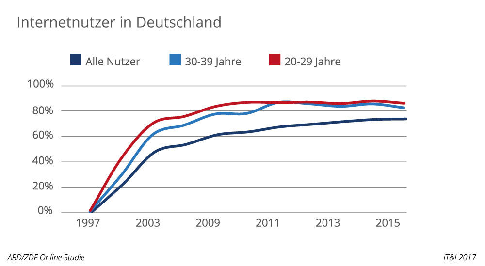![]() Abbildung 1: Bestimmte Altersgruppen nutzen das Internet zu fast 100 Prozent. |