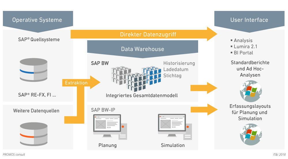 Abbildung 1: Überblick über eine IT-Struktur einer Data-Warehouse- und Business-Intelligence-Lösung mit SAP®.