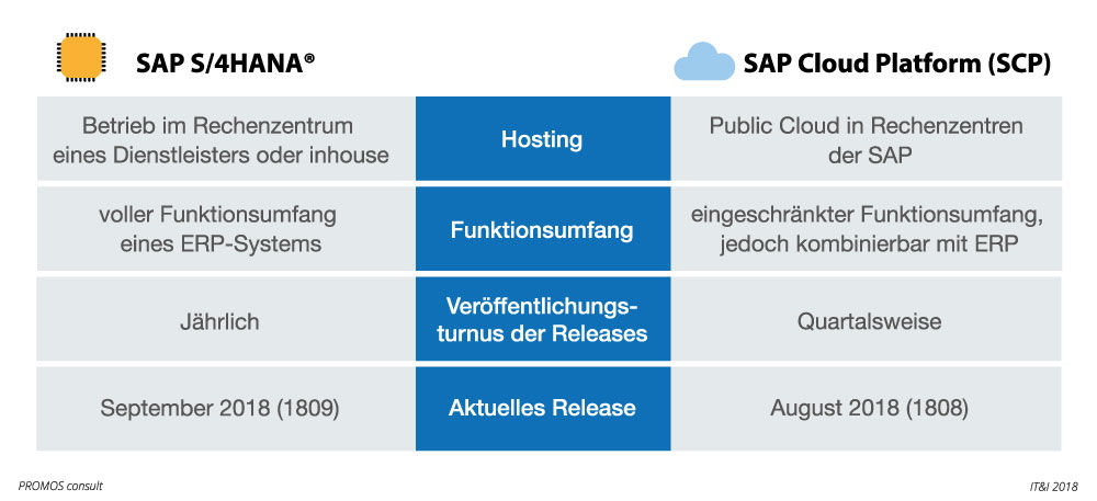 Abbildung 1: Vergleich der Produkte SAP S/4HANA® und SAP Cloud Platform (SCP).