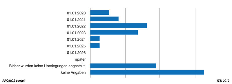 Die momentane Zurückhaltung kann vielfältig begründet sein. Egal, ob die betroffenen Unternehmen sich nun angesichts der noch ausstehenden Frist in Sicherheit wiegen oder die Angst vor der Komplexität, Machbarkeit sowie unvorhergesehenen Tücken mitschwingt, eine intensive Auseinandersetzung sollte nicht aufgeschoben werden, bis der Beratermarkt leergefegt ist. Denn ein Blick in die Pipeline verrät, dass betriebsame Zeiten anstehen. In ebenjener PROMOS Umfrage wählten fast 60 Prozent der befragten Unternehmen, die bereits einen konkreten Stichtag für ihre Umstellung avisiert haben, die Jahre 2022 und 2023 als Wunschtermin (Abbildung 1).