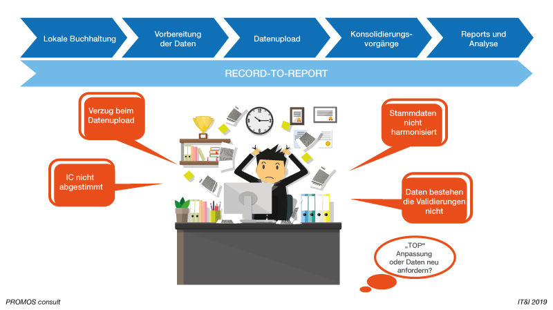 Ein traditioneller Record-to-Record-Prozess umfasst sämtliche Tätigkeiten, um zum Periodenende einen entsprechenden Report zum Finanzabschluss bereitstellen zu können. Von der lokalen Buchhaltung über die Vorbereitung der Daten sowie dem Datenupload bis hin zu den klassischen Konsolidierungsvorgängen werden diverse Einzelschritte durchlaufen, bis die tatsächliche Erstellung des Reports und die Analyse erfolgen kann. Informationen aus den Bankkonten, Haupt- und Nebenbuchhaltung müssen aufbereitet, anschließend analysiert und ggf. nachjustiert werden, weshalb diese Prozesse gut und gerne mehrere Tage in Anspruch nehmen können. Erstellt ein Unternehmen einmal im Jahr einen Jahresabschluss, dann fällt dieser Aufwand vielleicht wenig ins Gewicht und man sieht dem Abschluss gelassen entgegen. Sobald Unternehmen jedoch quartalsweise oder sogar monatlich einen Periodenabschluss durchführen, haben die Mitarbeiter regelmäßig ein hohes Arbeits- und Stresspensum zum jeweiligen Stichtag zu bewältigen.