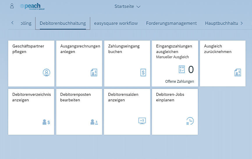 Abbildung 1: Das Fiori® Launchpad ermöglicht den Mitarbeitern von Peach Property einen schnellen, zentralen Zugriff auf ihre IT Plattform.