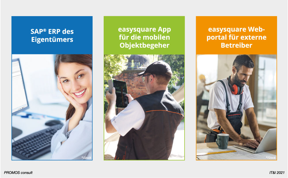 Abbildung 1: Die PROMOS QMVKS basiert auf drei Säulen: einer Lösung für SAP®, der mobilen easysquare App und dem easysquare Webportal für externe Dienstleister.