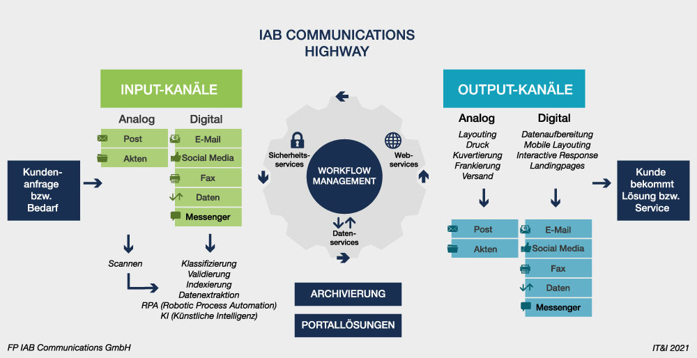 Das massenhafte Scannen von Briefen oder digitalen Eingängen und Umwandeln in digitale Formate ist sehr gefragt. Dies kann erweitert werden mit intelligenten Messenger-Lösungen, die man passgenau in neue Workflow-Systeme integriert. Zusammen mit künstlicher Intelligenz (KI) bzw. Machine Learning und Robotic Process Automation (RPA) ergeben sich effektive Kommunikationslösungen, die vor allem die Arbeit für die zuständigen Mitarbeiter deutlich vereinfachen und gleichzeitig Kosten sparen.