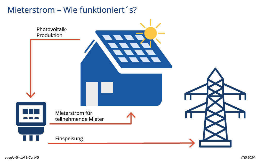 Abbildung 1: Nicht verbrauchter, überschüssiger Strom aus der Mieterstrom-Produktion wird in das öffentliche Stromnetz eingespeist.