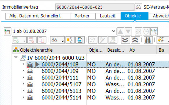 der Stammdaten Mietobjekt, Mietvertrag und SE-Verwaltungsvertrag
