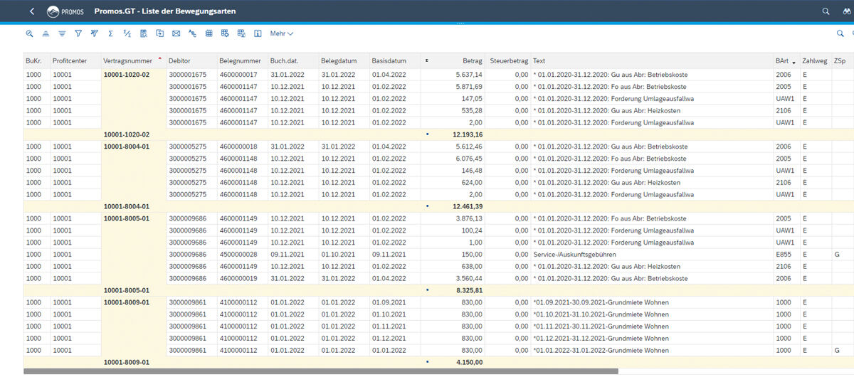 PROMOS Reporting Vertragsbuchhaltung / Forderungsmanagement