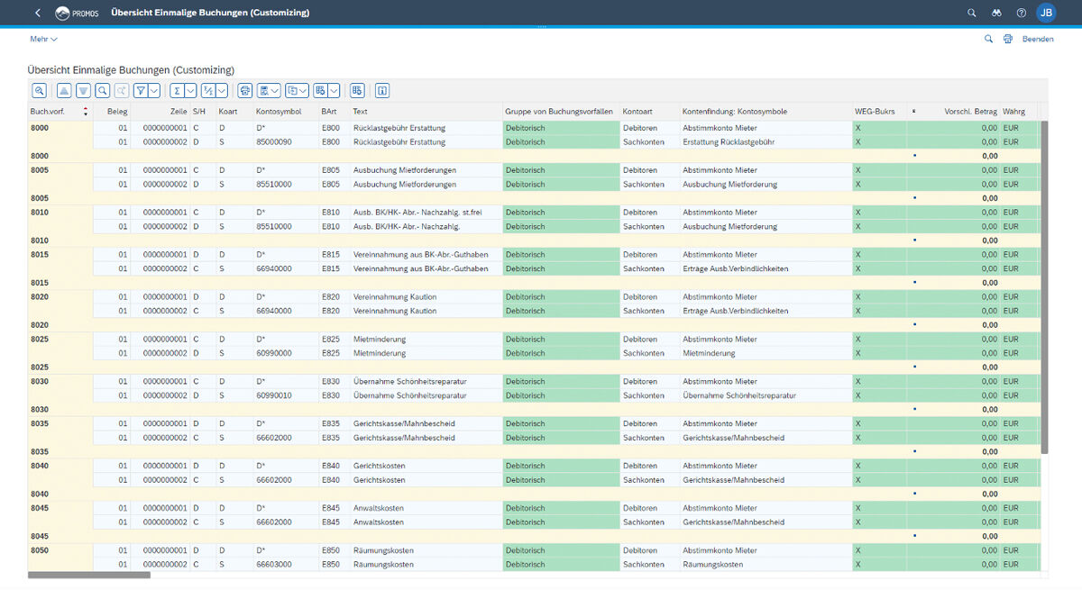 - PROMOS Auswertung Customizing einmalige Buchungen