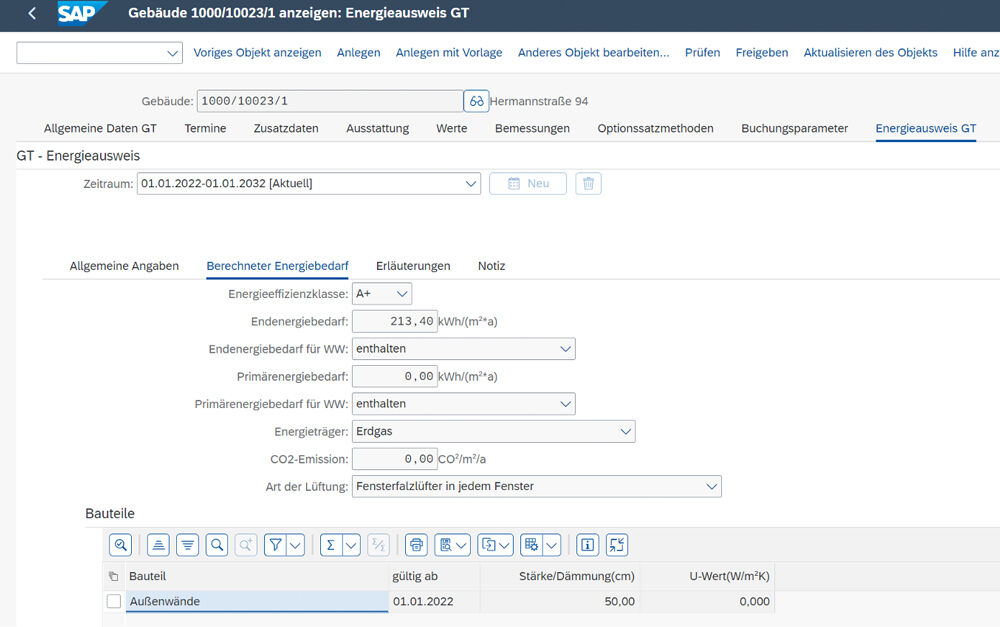 Transparenz: In einem separaten Reiter werden wesentliche Daten zum Energieausweis eines Gebäudes übersichtlich erfasst.