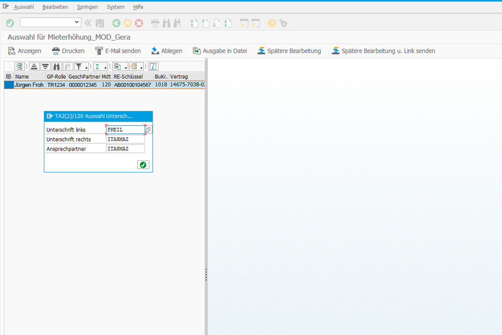 Nach erfolgter Freigabe werden die zuvor gesetzten Platzhalter durch eingescannte Unterschriften ersetzt und ein Druck oder Mailversand der Korrespondenz ist möglich. Nur das finale PDF findet Eingang ins Archiv und obsolete SAP® Ablagen werden gelöscht.