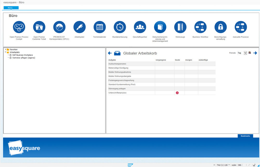 Mittels easysquare workflow werden die Mitarbeiter mühelos durch den Unterschriftenprozess geführt. So erscheinen bei den zuständigen Mitarbeitern im globalen Arbeitskorb jeweils Hinweise, dass ein Prozess zur Bearbeitung ansteht.
