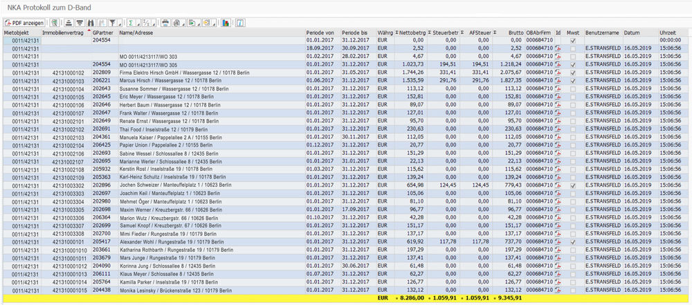 Nutzen Wohnungsunternehmen für die Nebenkostenabrechnung die SAP® Standardtransaktionen unter Einbeziehung der Ergebnisse der D-Sätze, können die Informationen zu den eingelesenen PDF-Dokumenten angezeigt werden. Eine Vollständigkeitskontrolle gehört ebenso zu den Bearbeitungsmöglichkeiten wie der Druck einzelner Abrechnungen. Hierbei wird jedes Abrechnungsschreiben mit einem oder ggf. mehreren vorhandenen externen Abrechnungsschreiben zusammengeführt und je nach Einstellung bei der Verarbeitung gedruckt und archiviert. Die manuelle Nacharchivierung von Papierdokumenten entfällt und ein Gesamtdokument bildet die ideale Grundlage für das digitale Archiv.