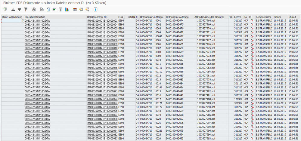 ![]() Nach dem Einlesevorgang wird eine Liste der verarbeiteten Dokumente angezeigt und das Dokument kann über das entsprechende Icon zur Anzeige gebracht werden. |