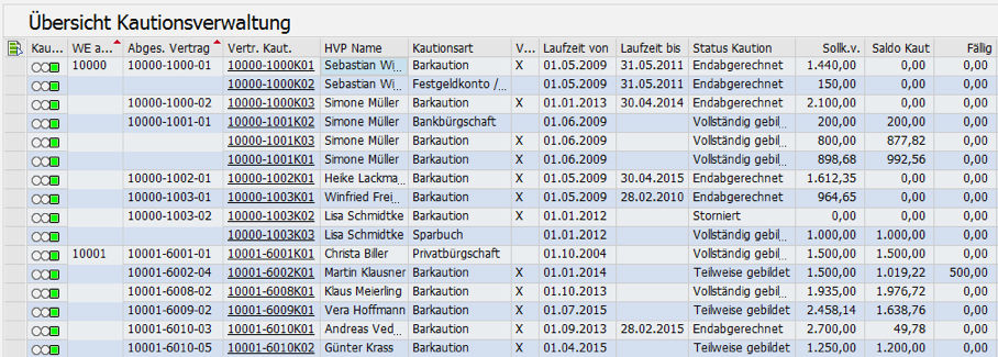 Weitere Funktionalitäten zur Verwaltung barer Kautionen:
