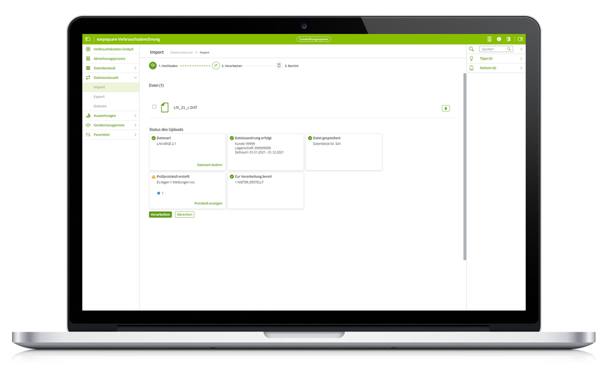 Gesetzkonformität: Die easysquare Lösung gewährleistet die Abrechnung nach HKVO und VDI 2077.