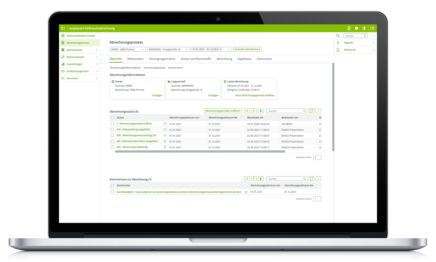 Gesetzkonformität: Die easysquare Lösung gewährleistet die Abrechnung nach HKVO und VDI 2077.
