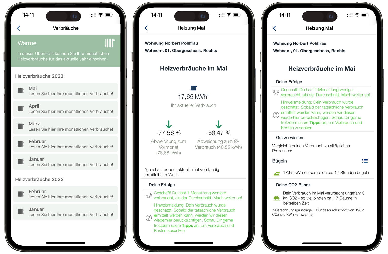 Eine detaillierte Verbrauchshistorie, Benchmarks und Vergleichsdiagramme sowie Empfehlungen zur Optimierung des Energieverbrauchs tragen insgesamt dazu bei, das Verständnis für den individuellen Energieverbrauch Ihrer Mieter zu fördern, den Energieverbrauch zu reduzieren und die Energieeffizienz in den Wohngebäuden zu steigern.