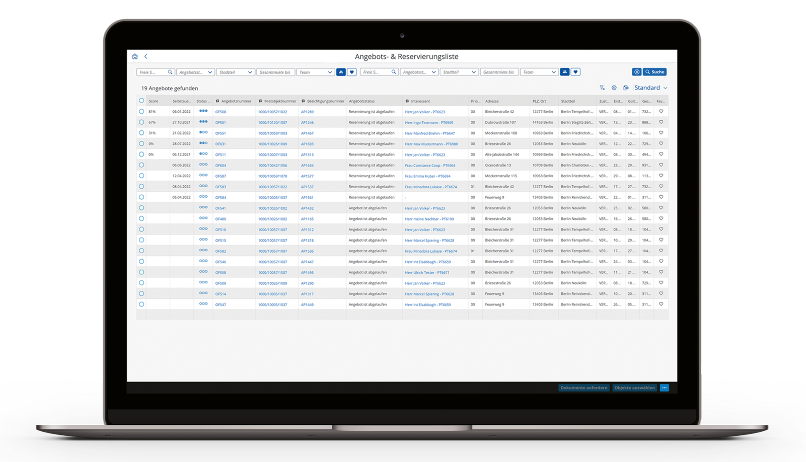 Matching: Verschiedene Mechanismen, wie Matching oder Scoring zur Qualifizierung der ausgewählten Interessenten, unterstützen die Vorauswahl. Selbstauskünfte und SCHUFA liegen vollständig digitalisiert vor.