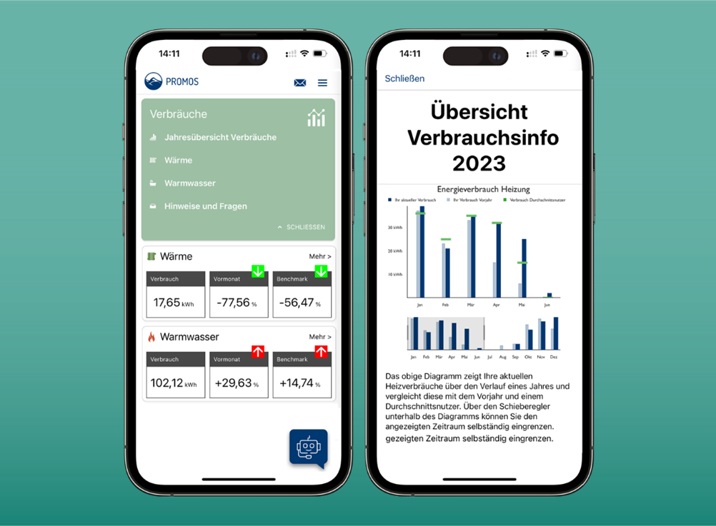 Abbildung 3: Über die Mieter-App lassen sich die unterjährigen Verbrauchsinformationen bereitstellen, so dass die Mieterschaft detaillierte Einblicke in ihre Verbräuche erhält. Auf Wunsch können zudem personalisierte Benachrichtigungen zur Förderung eines bewussten Energiemanagements gesendet werden.