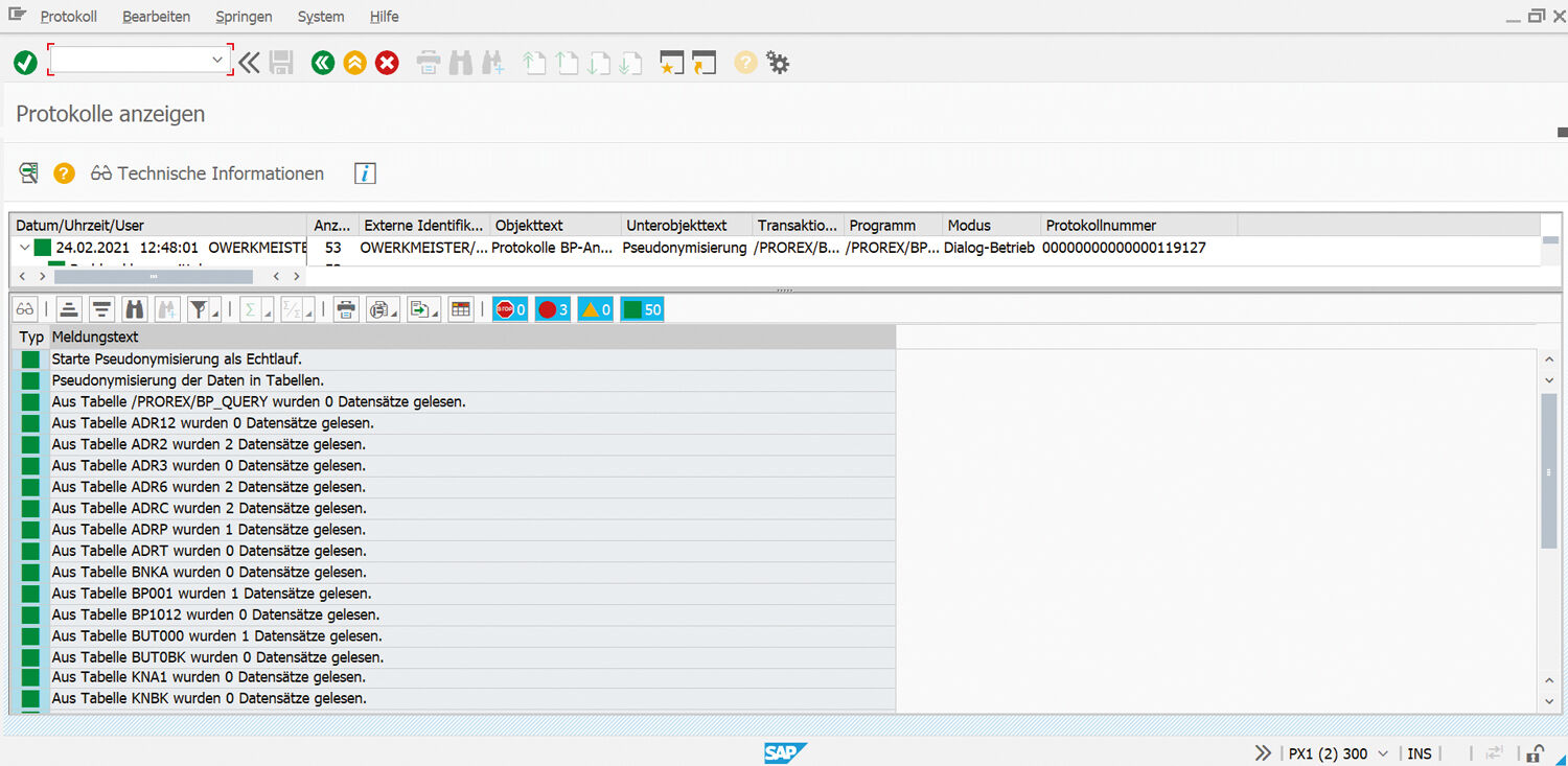Die Pseudonymisierung erfolgt ganz einfach durch den Start eines Programms, welches im Rahmen des Aufbaus eines Testsystems durchgeführt wird. Customizing-Einstellungen definieren, welche Felder in welchen Tabellen auf welche Weise pseudonymisiert werden sollen. Aufbauend auf diesen Einstellungen werden sämtliche Daten in den SAP® Standardtabellen sowie in den kundeneigenen Tabellen pseudonymisiert. Anders als bei der Anonymisierung müssen bei einer Pseudonymisierung keine fachlichen Prüfungen der Datensätze vorgenommen werden.