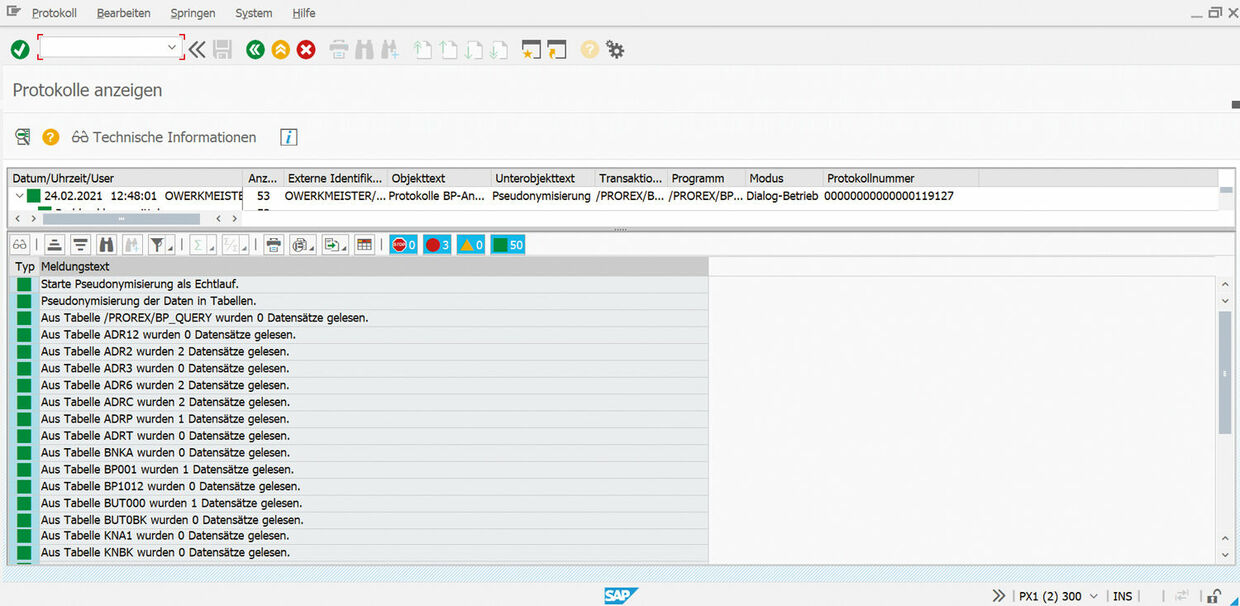 - Ergebnisprotokoll: Ein Protokoll weist die Ergebnisse des Pseudonymisierungsprogramm für den Anwendenden nachvollziehbar aus.